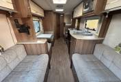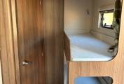 2016 LUNAR VENUS 580/6 CARAVAN FOR SALE. This caravan is designed to sleep 6 people. The front lounge is spacious and comfortable for dining and relaxing. The long bench seats can be converted into a double bed or used as 2 singles. The centre dinette area can also convert into a single bed with another single bed fitted above. There is another set of bunk beds at the rear. The midship kitchen is fully functional with a full sized cooker, 3 way fridge freezer, microwave and a sink with mixer taps. End bathroom is spacious with a shower, wash hand basin and a cassette toilet. Good storage throughout the caravan. Specification includes alloy wheels, a motormover, spare wheel, mains hook up, stowaway dining table, a waste master and a water barrel.