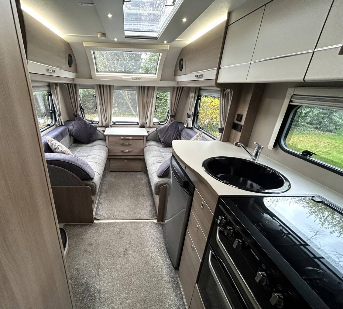 Built on the AL-CO chassis, the caravan comes with service history, Motormover, ATC trailer control, hitch lock, front & rear stabilisers, TV Aerial, 2 gas bottles, spare wheel, external BBQ & 230v point and awning tracking on both sides of the caravan. The caravan also comes with an abundance of additional extras, from a 40L Aquaroll to kitchen utensils and many more items in between.