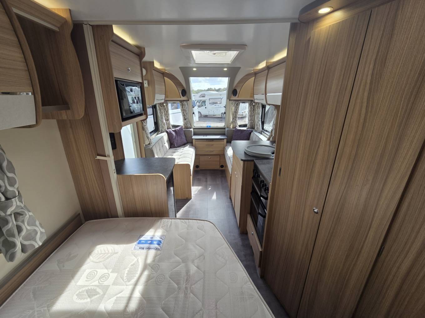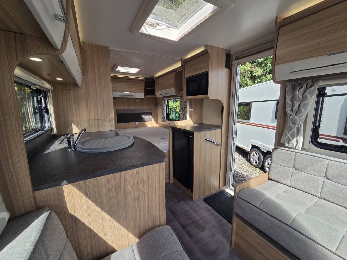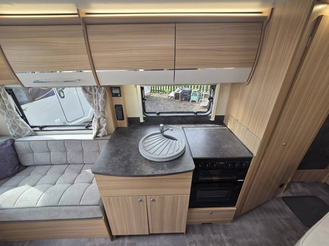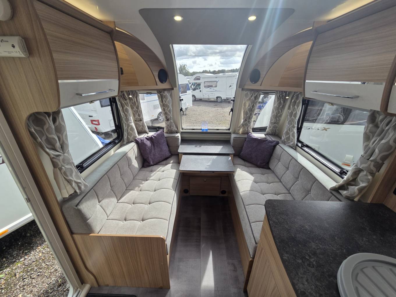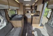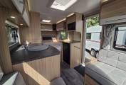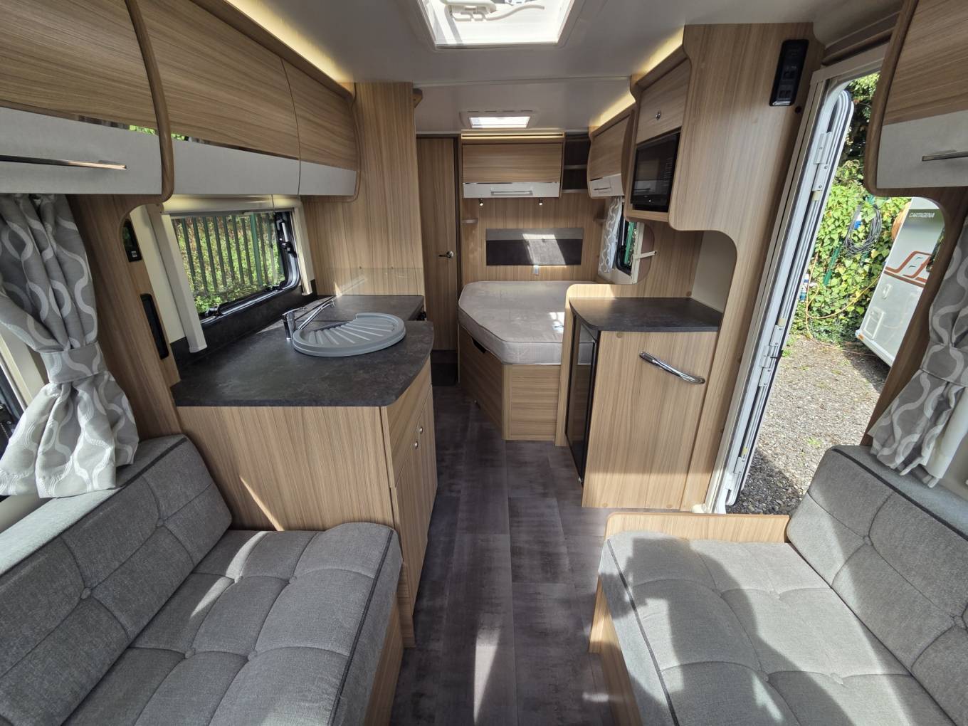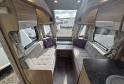 Specification includes Powrtouch motormover, Truma Combi heating & hot water with iNet, roof mounted solar panel, panoramic sunroof window, drop down fitted carpets, ALKO stabilizer hitch, status directional TV aerial, alloy wheels, DAB radio with Bluetooth connection, LED lighting and BBQ gas outlet.