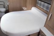 Across the rear the 575 benefits from a full-width bathroom with vanity sink unit, cassette toilet and large shower cubicle.
