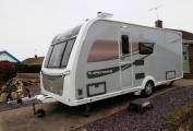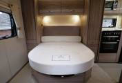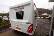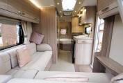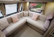 Externally there are the usual locker storage to the front, housing the gas bottle and side access to the under sofa and underbed storage allowing retrival of outdoor items such as walking boots, chairs and tables etc. Along with the leisure battery locker and 230v electric hook-up there is the water filling point, external BBQ point and external 230v socket. Motor movers are fitted. Heating and hot water via the duel fuel Whale system.