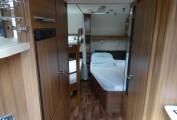 At the rear of the caravan, a French Bed features with an ingenious drop down bed that folds down when needed, or as storage when not. Bunk beds are also found next to the bed, making up five berths in the bedroom which has a slide-across partition for privacy.