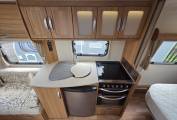 Specification includes Powrtouch self engage motormover, ALDE central heating and hot water, alarm system, LED lighting, ALKO ATC, ALKO stabilizer hitch, solar panel, reverse camera and screen, drop down fitted carpets, alloy wheels, external BBQ point, external 240v socket and stereo system.