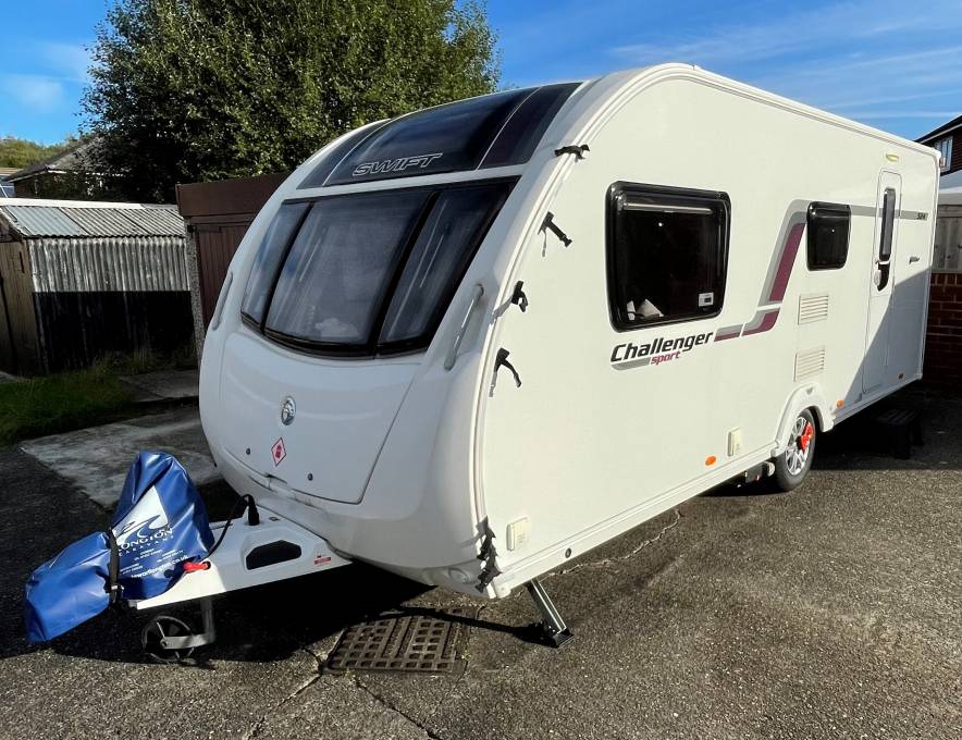 2014 SWIFT CHALLENGER 524 SPORT FOR SALE. Presented in excellent condition throughout. This single axle four berth model offers a spacious front lounge that can be converted into a large double or 2 single beds. The long bench seats can be used for dining with an occasional pull out table or there is a larger free standing table that can be stowed away while travelling. Mid seating dinette area can also be made into a single bed or 2 Bunk Beds. Kitchen area comes fully equipped with a full-sized cooker, sink, microwave and 3 way fridge freezer. Rear washroom has a separate shower, wash hand basin, cassette toilet, and a full-sized wardrobe. Your washroom can also be used as a private changing area. Extras include: