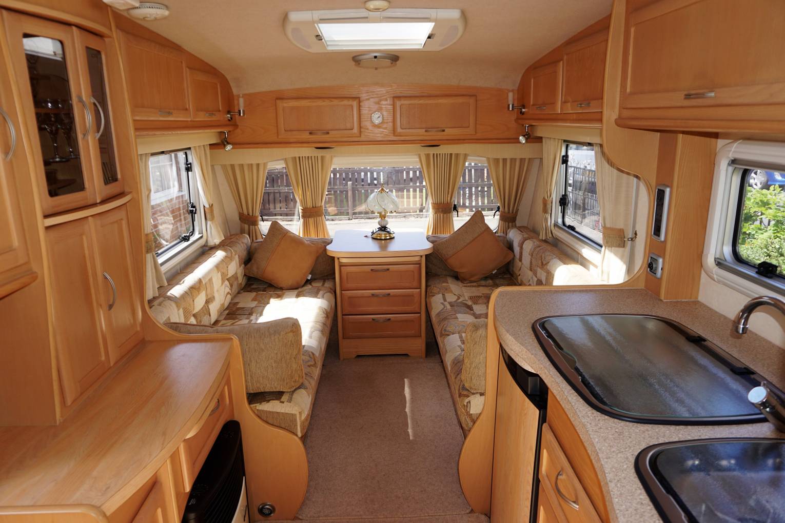 The caravan also comes with motor mover, Alko ATC, Fiamma security handle, TV Directional Aerial, Radio/CD, Alarm, hook up cables, water barrel and wheel lock.